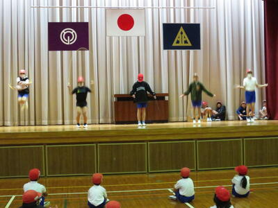 次に、学年ごとに縄縄跳びを発表しました。3分間で何回跳べるかという視点での発表でした。発表しない時は、声をかけたり、回数を数えていたりと温かさを感じたところです。学年ごとに跳ぶスピードは当然違いますが、どの学年も一つのゴールに向かって真剣に跳び、ひっかかったらはげます言葉「いいよ」「おしい」「大丈夫」とかを遣っていました。また、気持ちを盛り上げていこうとする言葉「はい はい はい」とやる気をアップさせる言葉で、子どもたちの素晴らしい、美しい心を感じる時間となり、私は幸せを感じていました。