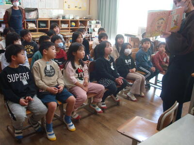 分館の方に、2月6日から本の読み聞かせを低・中・高学年ごとに3日間お願いしております。今日は、低学年児童への読み聞かせでした。読んでくださる本の内容をしっかり聞いたり、内容が面白くて笑ったりと、本に親しむ有意義な時間になりました。
