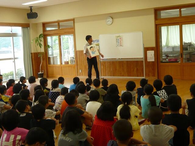 夏休みを前に、「万引き」や「インターネットのトラブル」などの、学習を行いました。延岡警察署生活安全課の方々の専門的な指導をいただきました。