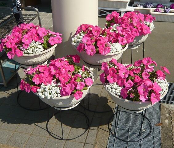 ピンクの美しいペチュニアと、白いかわいいアリッサム。渡部先生が、心を込めて毎日お世話をしてくださいます。美しい花々に囲まれている北浦小です!!