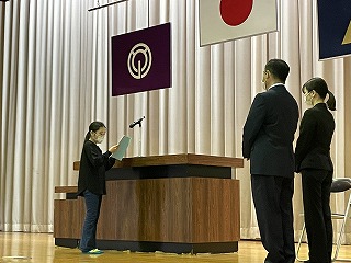 今年は9名の1年生が入学してきました。入場では担任の平出水先生に連れられて一列で歩いて入場する姿がほほえましくもあり、会場は温かい拍手に包まれました。