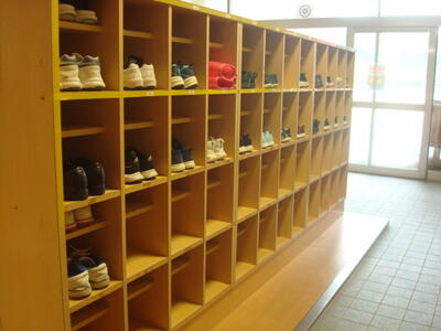 これまでもすごいなあと思っていたのですが、ずっと続いているので、本日、1つ紹介します。それは、子どもたちが使う靴箱のことです。子どもたちには、靴箱の手前に「靴のかかと」をそろえることを指導しているのですが、見事に、どの学年もそろっているのです。ここまでそろうと、美しいですね。