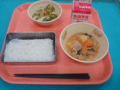 ごはん、牛乳、カレーライス、フルーツナタデココでした。みなさんが好きなメニューだったのではないですか?