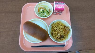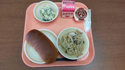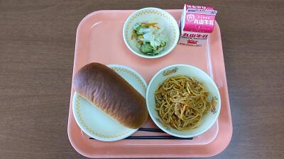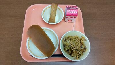 今日の献立は、減量コッペパン、牛乳、焼きそば。春巻きです。春巻きは皮がぱりぱりして、とてもおいしかったです。もう一本食べたかったです。