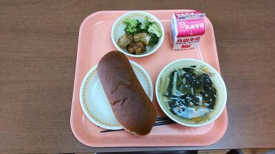 今日の献立は、ミルクパン、牛乳、たこやきふう、中華スープです。「たこやきふう」は「たこ焼き」をもとに延岡で生まれた献立で、たこ焼きのように焼くのではなく、油の中で一つ一つ丁寧に揚げてつくっています。青のり、鰹節など磯の香りもしてとてもおいしいです。