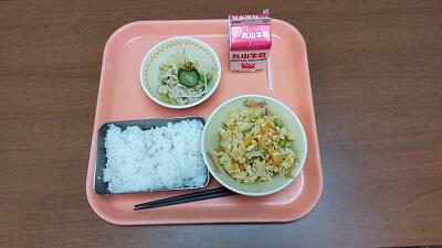 明日は中学校の卒業式。今日の給食が中学3年生にとっては、最後の給食となります。今までの中学校での思い出を浮かべながら、おいしいカレーライスを味わってほしいと思います。黙食で友達と会話もできませんが、最後の給食の時間を過ごしてほしいと思います。きっと記憶に残るおいしいカレーライスになったのではないでしょうか。