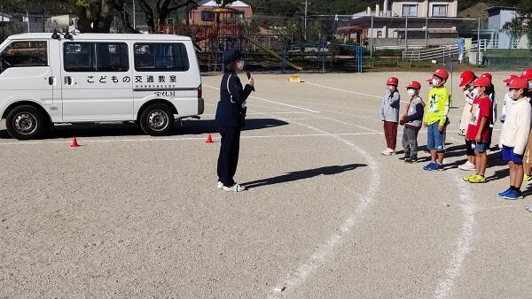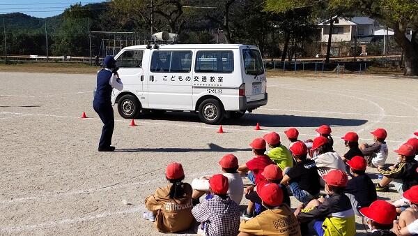 今日は交通教室が行われました。延岡警察署の交通課や交通指導員の方々がお越しいただき、自動車の死角のことや横断歩道の渡り方、自転車の乗り方などについてご指導いただきました。下学年の子どもたちは、車の運転手からしっかりと確認できない死角について指導員から説明を受けていましたが、大人でも死角になるので子どもは小さいので、もっと運転手から見えなくなるということを知ることができ、とてもよい機会となりました。できるだけ、自動車の回りでは遊ばないと言うことも学んだことと思います。
