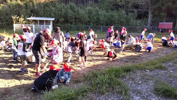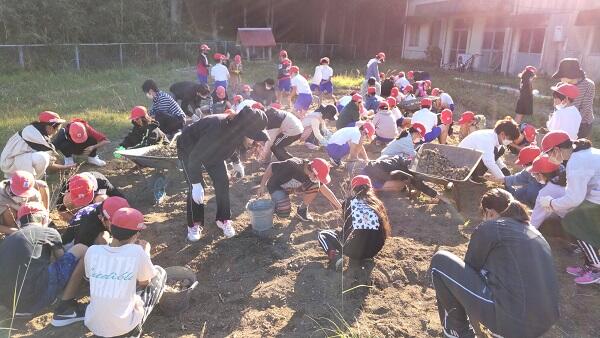 朝の活動の時間を使って、新しく作っている畑の石拾いをしました。みんなで一緒に拾うとあっという間に石もなくなりました。これから、もう少し耕して、作物を育てやすい畑にして、早めに学年ごとに野菜の種を蒔いてもらおうと思っています。みんな一生懸命がんばりました。