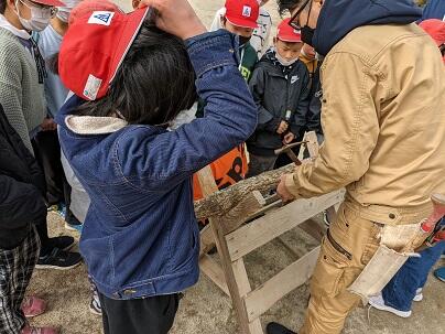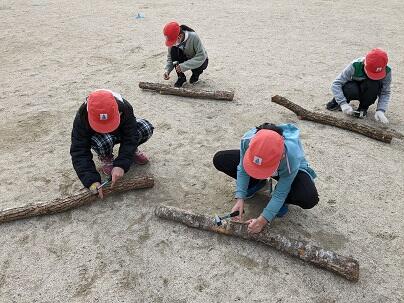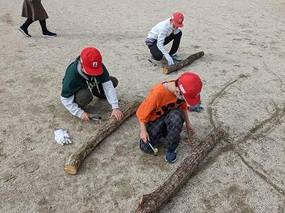子どもたちは穴に菌糸を丁寧に打ち込んでいき、スムーズに作業を進めました。とても楽しそうに作業を行いました。椎茸を食べるのは苦手だけど、自分の木から育った椎茸は食べられるかもと話す児童もいて、実施してとてもよかったと思いました。