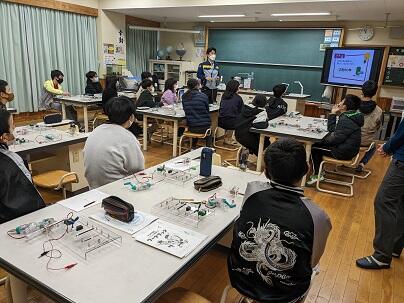 6年生の理科の授業で九州電力の出前授業が行われました。昨年度から行われている授業ですが、電力に関する様々なことについて実験道具を使ったりや画像を見たりしながら学んでいく授業でした。九電産業株式会社の古江様が講師となり、子どもたちに話をしていきますが、子どもたちの興味関心が高まるようにいろいろな仕掛けをして授業を進めていただきました。子どもたちも長い時間でしたが、みんな集中して取り組むことができました。