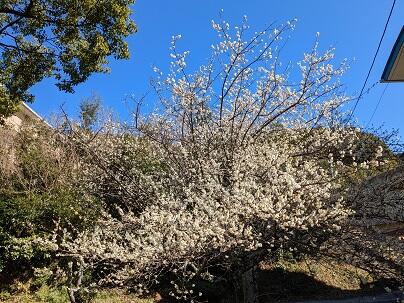 学校にある梅の木にきれいな白い花が咲いています。今年はかなりの花がついているのでたくさんの実が実るのではないでしょうか。早速、メジロなどの鳥も現れ、蜜を吸っているので、かなり受粉もできているのではないでしょうか。たくさん実がなるのが楽しみですね。