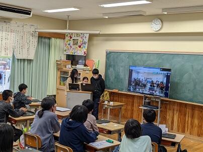 お隣の三川内小学校との交流学習を行いました。毎年本校で実施されていますが、三川内小の子どもたちは、それぞれの学年の教室に入って一緒に勉強を行います。自分の学校の紹介をしたり、地域の様子を発表したり、一緒にゲームを楽しんだり、給食を食べたり、昼休みにドッジボールをしたりと楽しい時間を過ごしたようでした。帰りもバスに乗り込む三川内小の子どもたちに手を振って見送って、思い出に残る交流ができたようでした。