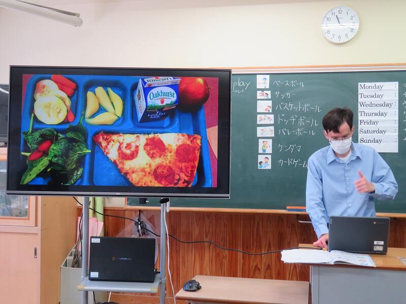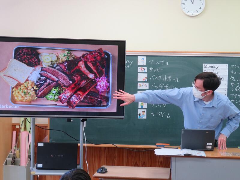 今日はALTのロバート先生が、3年生以上の学級の学習で『アメリカの文化』について、色々と教えてくださいました。