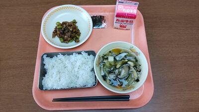 春雨を使った韓国料理のチャプチェでしたが、ニンニクがきいた甘辛の味で白ごはんがすすみました。バンバンジーもあり、国際的な給食でした。