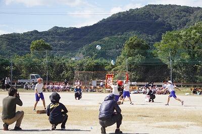 風が吹く肌寒い中での開催でしたが、全校児童113名全員そろって