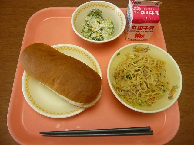 7月11日 給食 塩焼きそば コーンサラダ コッペパン 牛乳