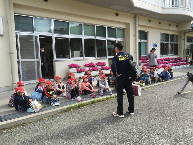 5月9日(水)は、2日(水)に予定されていた茶摘み体験が延期となり、この日に実施されました。その出発式の様子です。