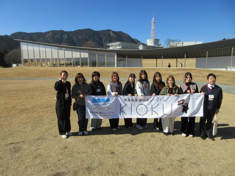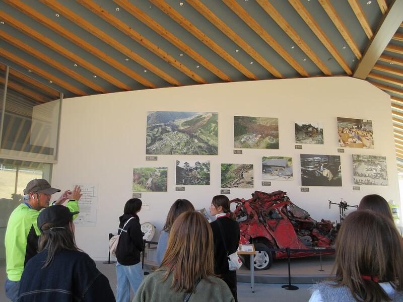 ↑ 午後は、本研修のメインともいえる「阿蘇地震震災ミュージアム」に行きました。当時の災害状況や復興へ向けた取組の動画を視聴した後、ガイドの方に施設内を案内していただきました。