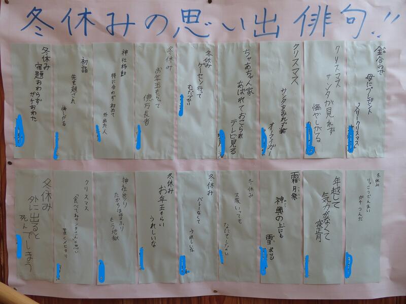 ↑5年生の俳句です。冬休みの思い出を俳句にしたようです。子どもらしく素直に気持ちを書いていていいですね。