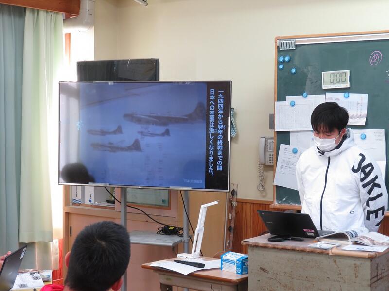 ↑6年生は社会科の学習でした。太平洋戦争時の空襲について、真剣に学ぶ子ども達でした。