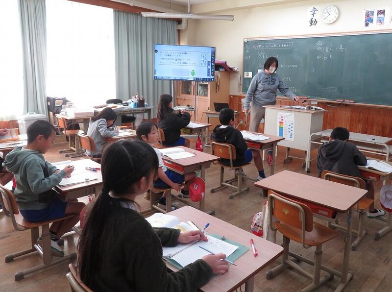 ↑3年生は小数の学習です。今日は分数を小数で表すことを学習したようです。一生懸命な姿でした。