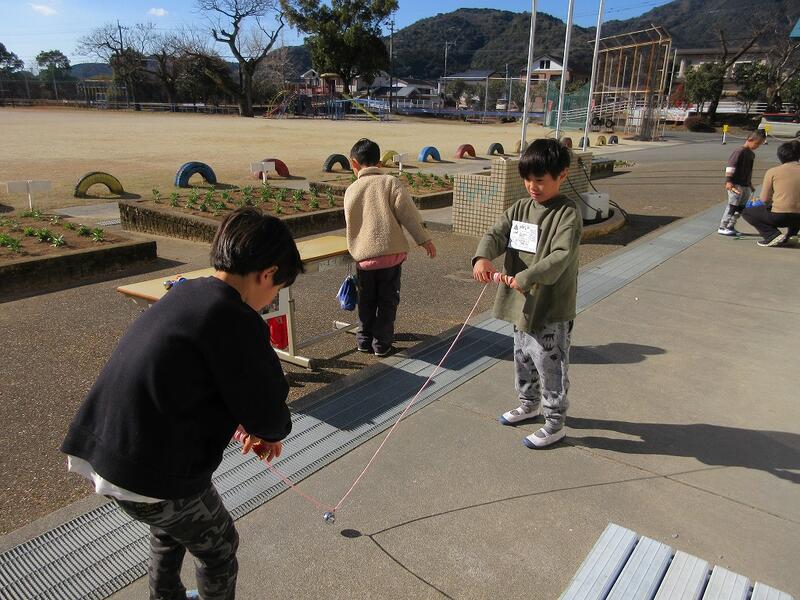 ↑ 初めての遊びもいくつかあったようですが、元気塾の皆様に教えていただきながら、すぐに上手になっていました。やはり、子どもたちは遊びの天才ですね!