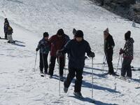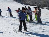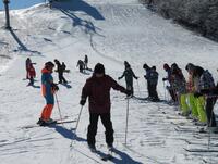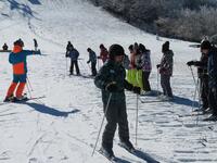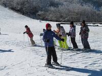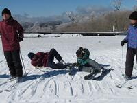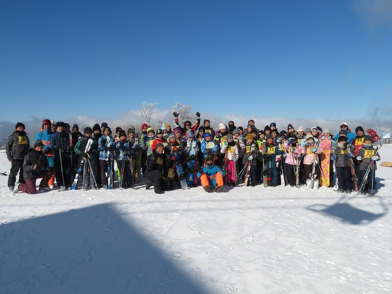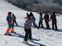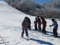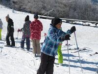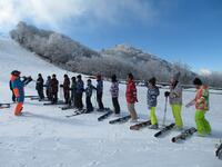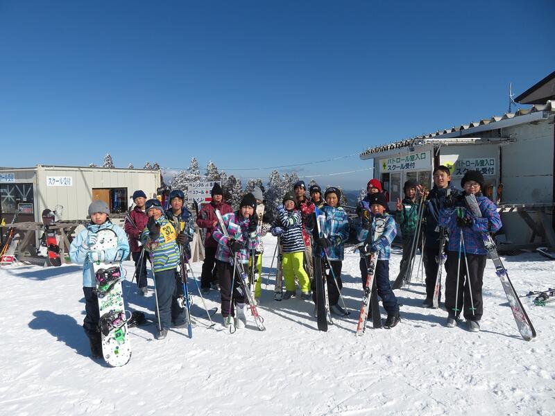 ↑スキー場で五ヶ瀬町の4つの小学校児童のスキー体験教室に合流させていただきました。スキー場は-4度でしたが、快晴のとても素晴らしい天候の中で実施できました。