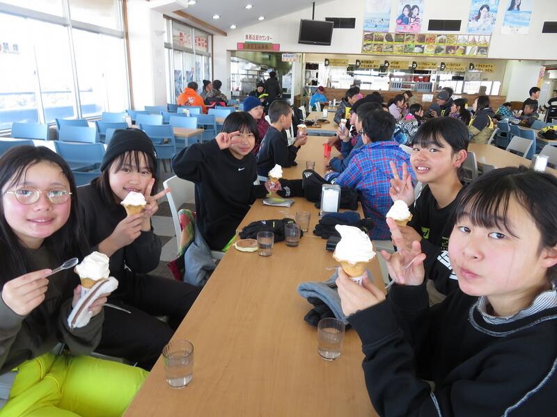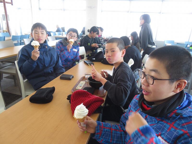 ↑お昼は暖かいレストラン内で昼食をとり、子ども達はソフトクリームも食べていました。