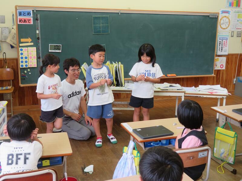 ↑ 1年生には先週から新しく転入したお友達がいます。今日は他学年の児童にも紹介がありました。しっかり自己紹介できていました。