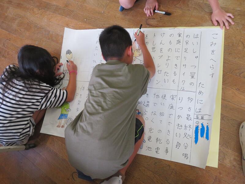 ↑4年生は社会科の学習のまとめを協力して行っていました。
