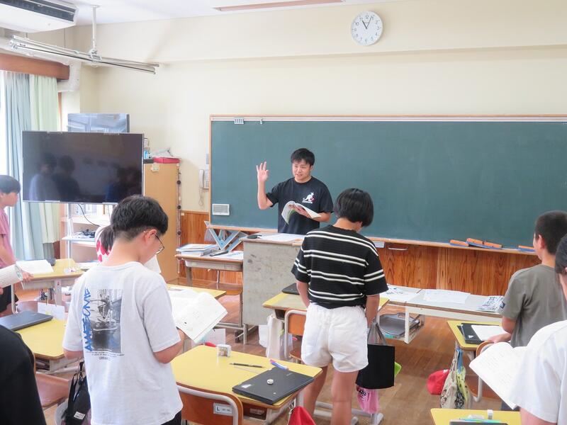 ↑今日は東京学芸大学から将来教員を希望されている4年生の学生さんが来られました。少人数の学校の学習を見学されていました。富山県出身で宮崎県に来るのは初めてということでした。将来、子ども達を育てる職に是非ついてほしいですね。
