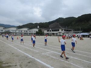 10月2日の朝の活動から1時間目まで全校体育で、北浦音頭とエール交換と開会式等の入場の練習を行いました。