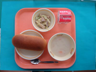 今日の給食は、減量コッペパン・牛乳・和風スパゲティ・キャベツのサラダです。