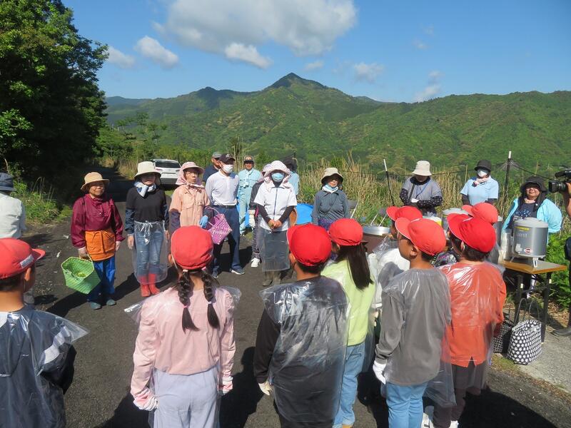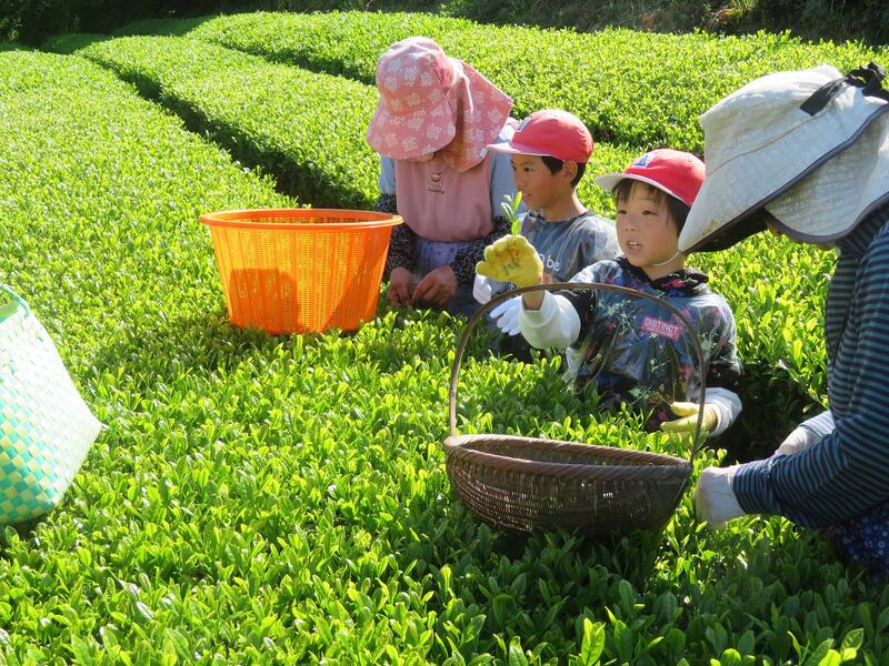 5月2日(金)良い天気の中、3年生は地下(じげ)地区まで行き、茶摘み体験をしました。良すぎる天気で、一生懸命取り組む子ども達は汗いっぱいでした。