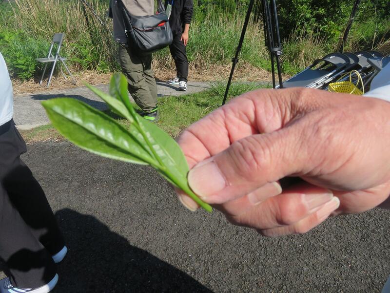 ↑ 葉を摘むときは、「一芯三葉」(芯と三枚の葉)を摘むよう、最初に教えていただきました。