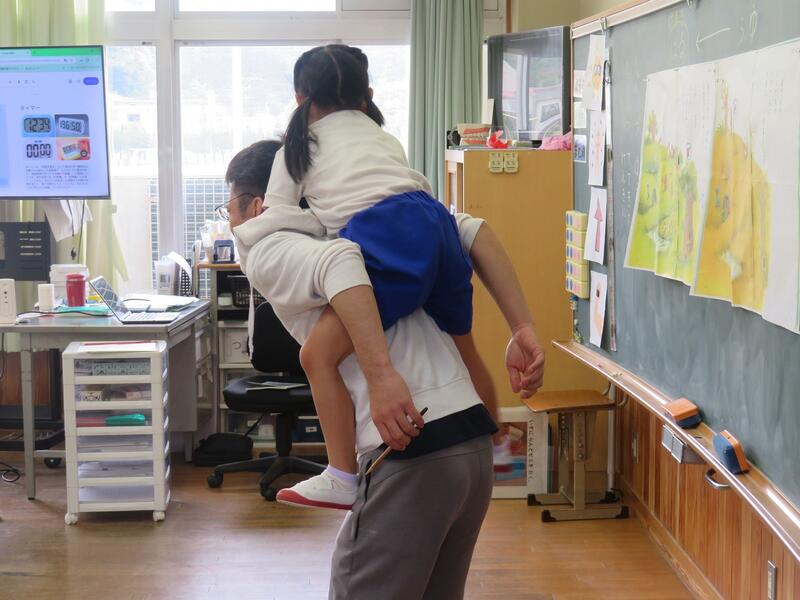 ↑1年生の子ども達は担任の先生が大好きでたまりません。
