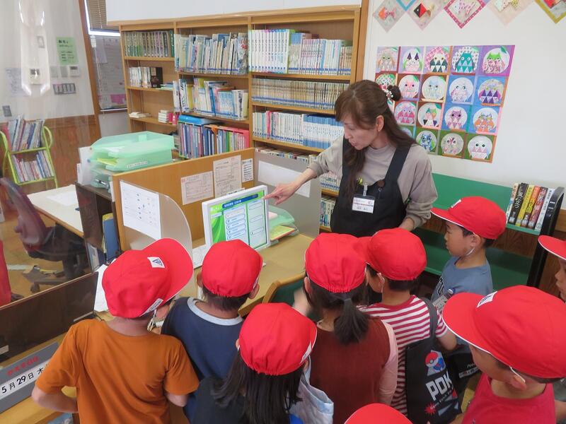 ↑ 1年生は本を選んで借りたり読んだりして楽しい時間を過ごしました。