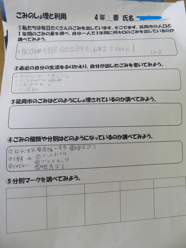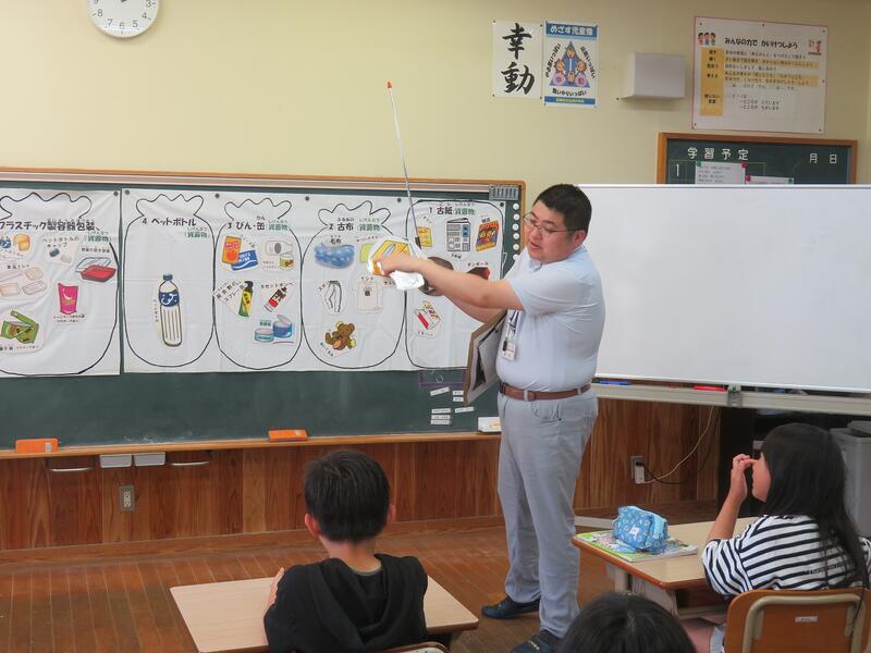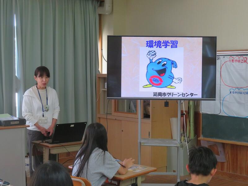 4年生の今日の5時間目は、延岡市クリーンセンターの方がいらっしゃっての社会科「出前授業」でした。4年生は「ゴミの分別」等の学習をしています。専門的な方に話をしていただき勉強になりました。