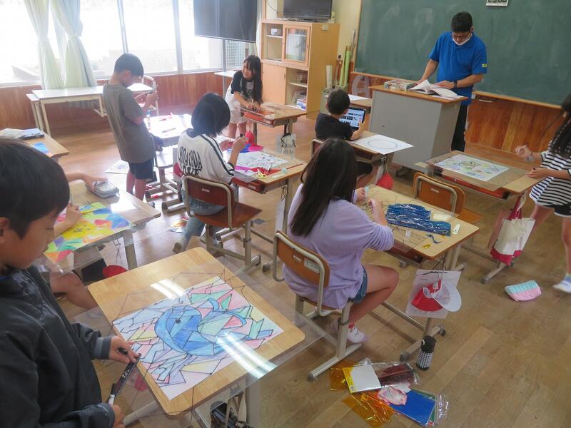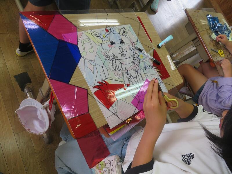 ↑ 4年生はステンドグラス作りをしていました。今週は下絵を描く内容で、タブレットを使ってそれぞれが描きたい絵を調べ、一生懸命下書きしていましたよ。
