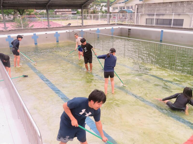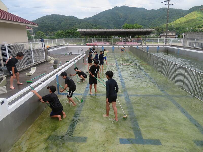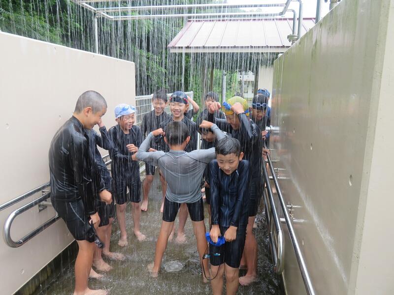 水温・気温がぎりぎり水泳可の温度で、まだ肌寒く早めの切り上げとなりましたが、子ども達は楽しそうに学習していました。