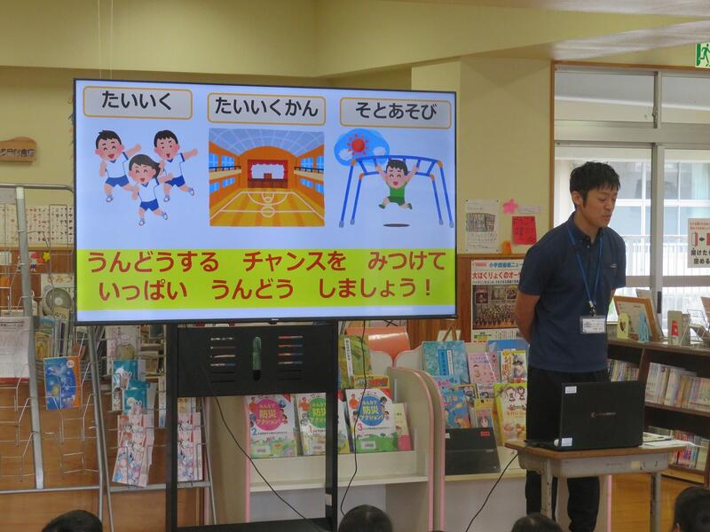 ↑今日は「運動することのよさ」について、担当職員からクイズ方式の話でした。