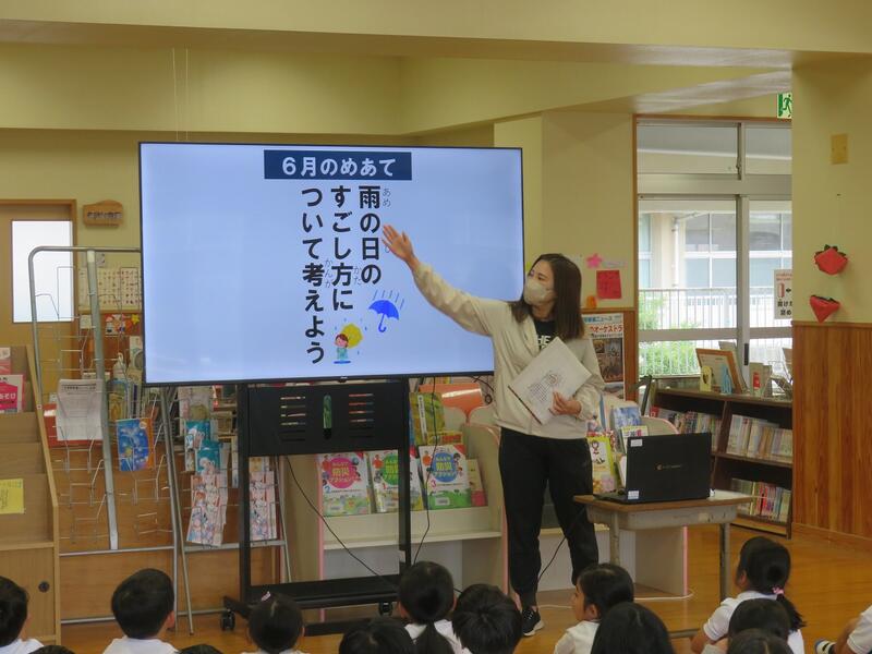 担当の先生からは5月のめあて「相手の話を聞こう(相手を見て・反応して)」の話でした。しっかりと話す人の目を見てうなずくことができていました。