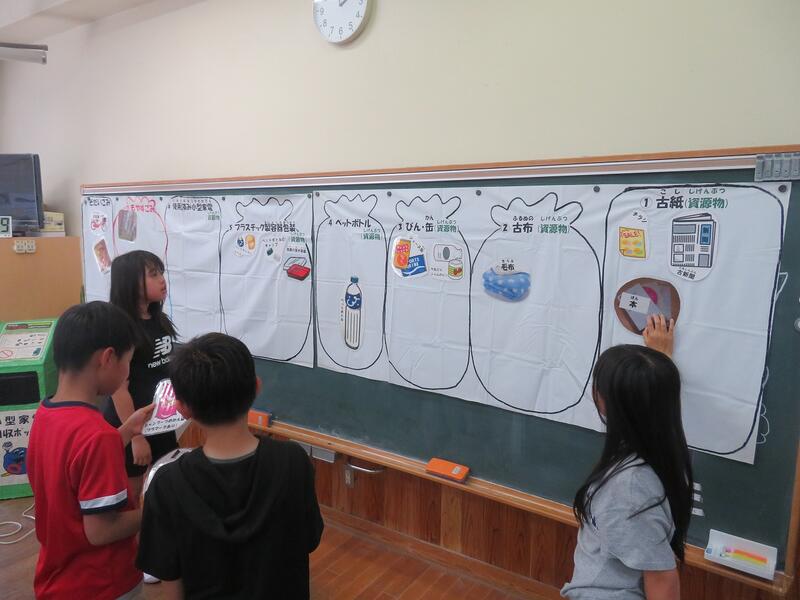 ↑子ども達は延岡市のゴミの分別のルールでのゴミの分別を考えました。また、4Rについても教えてもらいました。