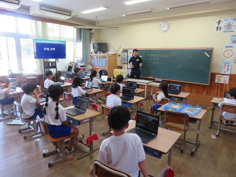 年度初めということもあり、今日は市内から外国語の指導教諭の先生が巡回で指導に来られました。今日は4年生の外国語活動、6年生の外国語の指導に入ってくださいました。