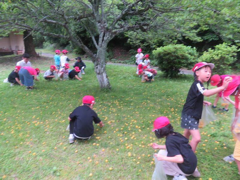 北浦小の校内には梅の木があります。今日の1時間目、1・2年生が実った梅の実を収穫しました。たくさんの実を一生懸命収穫した1・2年生、笑顔いっぱいでした。