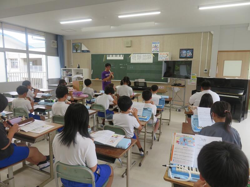 ある日の5年生の音楽の様子です。小学校は基本どの教科も担任が指導するので、担任もキーボードやリコーダーを弾きながら指導します。担任も子ども達も一生懸命楽しく真剣に学習する姿がよかったです。
