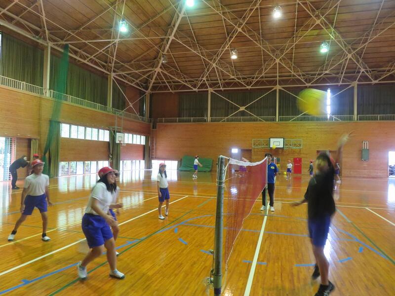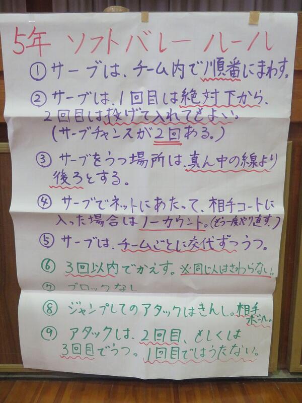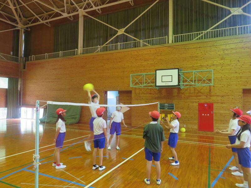 6時間目に5年生が体育でソフトバレーボールの学習をしていました。ソフトバレーボールは、ビーチバレーよりも軽いボールです。ネット型運動の学習で、自分たちで何度かやってみてルールを話し合ったようです。とても楽しそうにしていました。