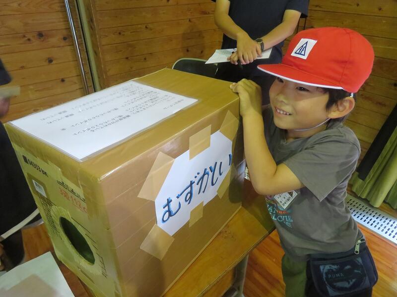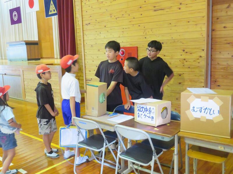 ↑「箱の中身当てゲーム」です。箱に手を入れ、中に入った物を当てます。