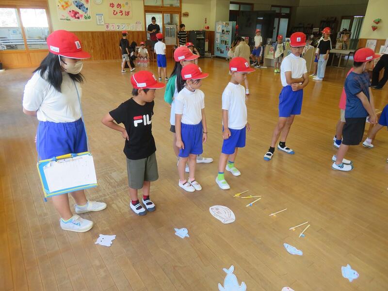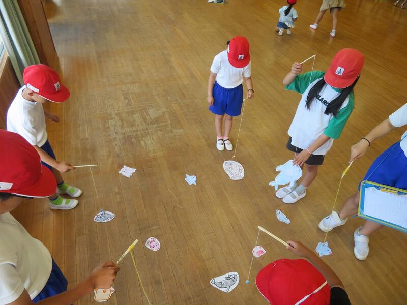 ↑「さかなつりゲーム」です。磁石のついた竿で魚を釣り上げます。
