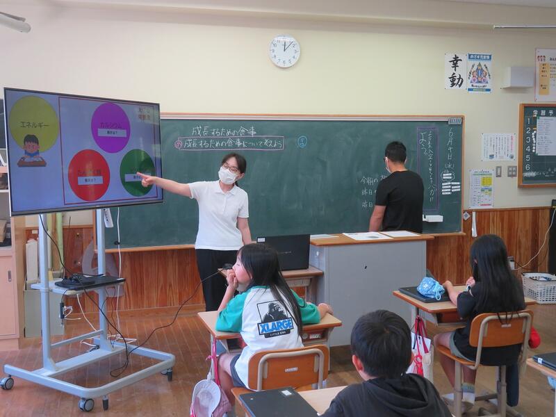↑4年生は栄養教諭と担任による食育授業(成長期の食事)でした。